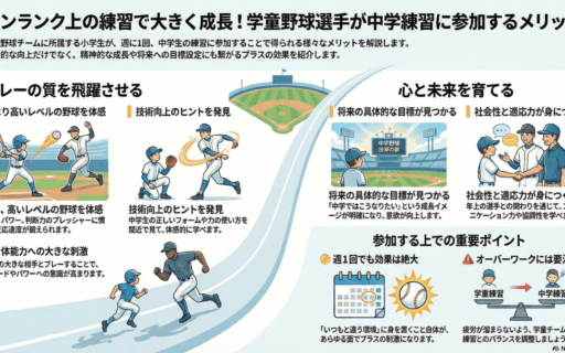 中学野球という次のステージを前に、実際の環境で体を動かし、雰囲気を感じられる機会です。